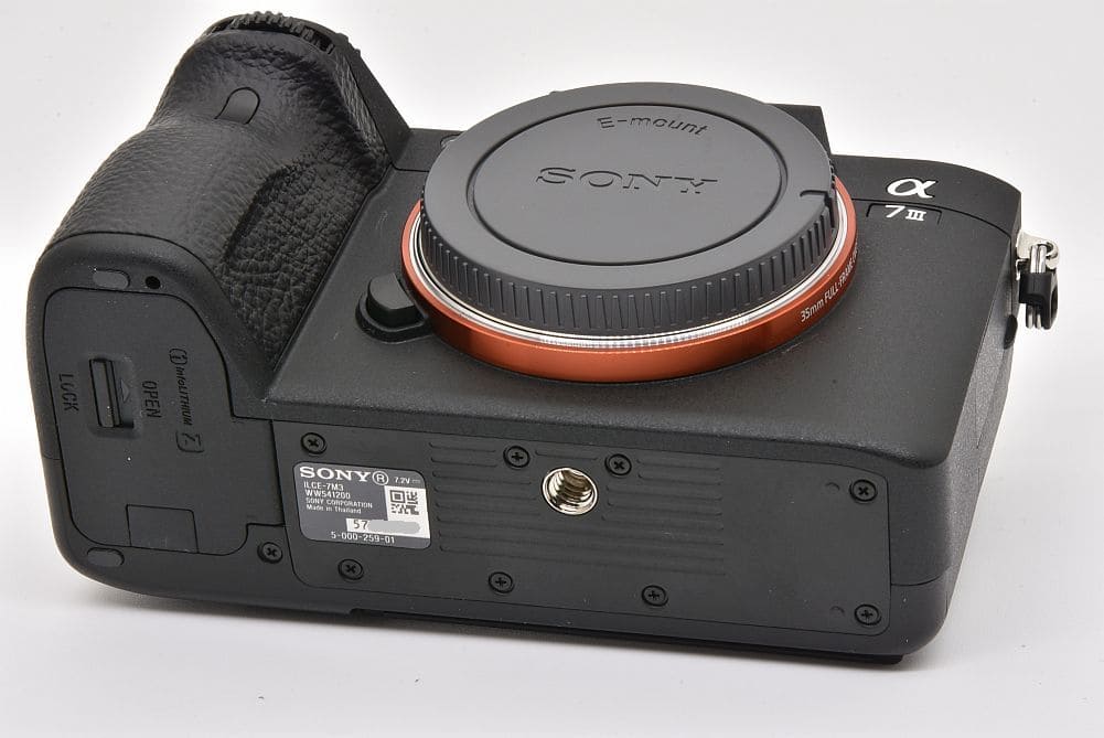 有効約2420万画素の35mmフルサイズ裏面照射型CMOSイメージセンサー「Exmor R」を搭載した、ミラーレスデジタル一眼カメラ α7 Ⅲでございます。モニター左上方付近に極僅かなスレがあり、マウント部分にレンズ装着時にできたと思われる僅かなスレがございますが実使用のしていない、ほぼ未使用の非常にキレイな状態でございます。 |