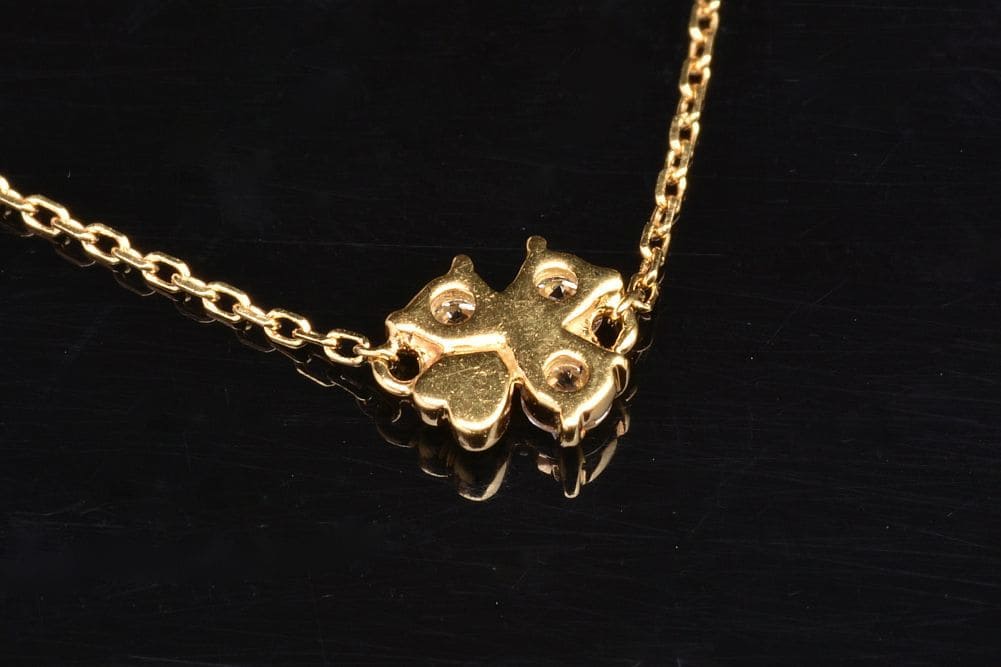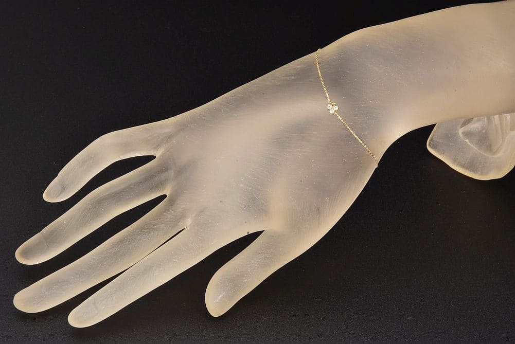 可愛らしいクローバーモチーフにダイヤモンドがセットされた『クローバー ディアリー ブレスレット』でございます。細かなスレがございますが、目立つ大きなダメージはございません。 |