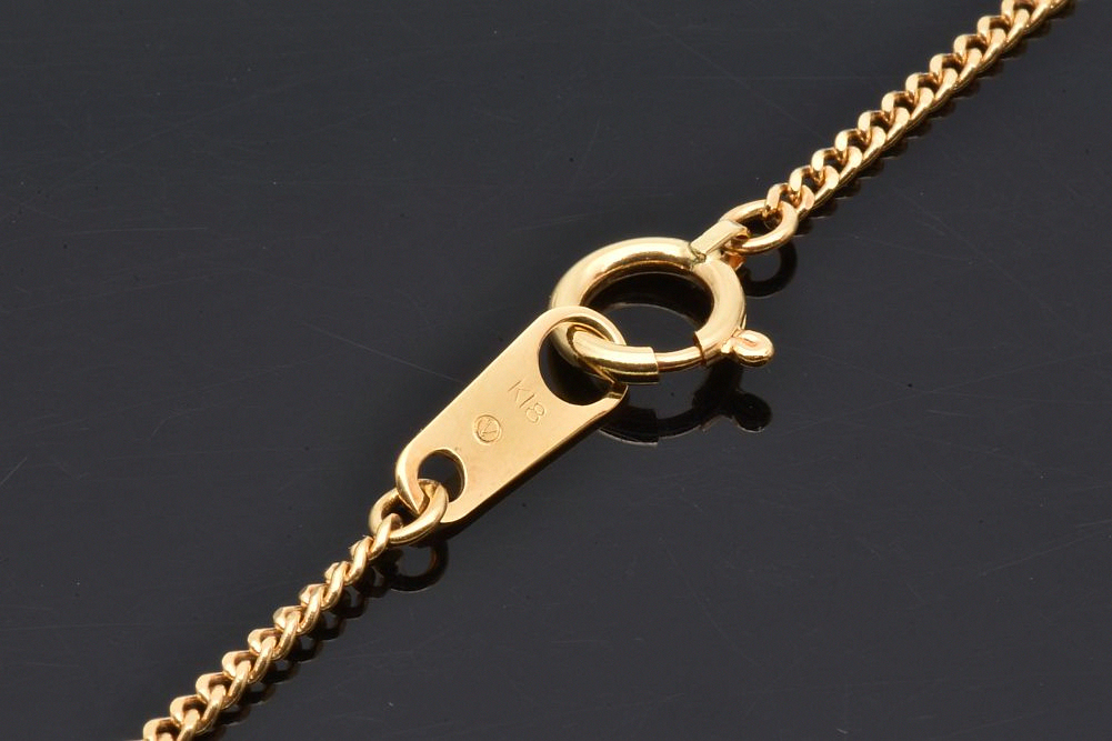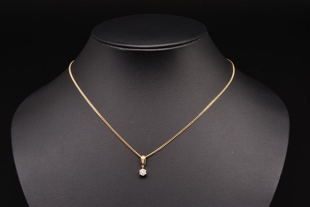 一粒のダイヤモンドが揺れ動く、シンプルなデザインのネックレスでございます。細かなスレが見られますが、目立つキズ等の無いキレイな状態でございます。 |