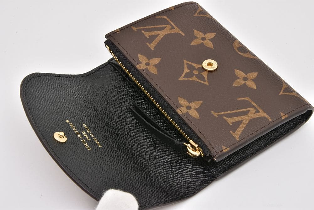 モノグラム・キャンバスとモノグラム・リバース キャンバスを組み合わせたコンパクトな財布『ポルトモネ・ロザリ』でございます。 |