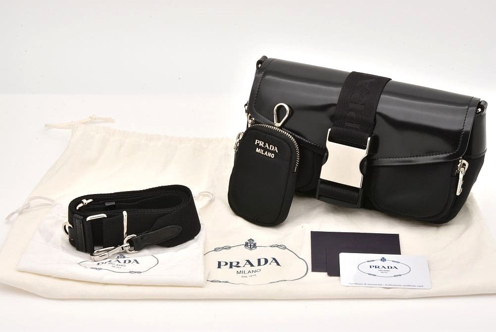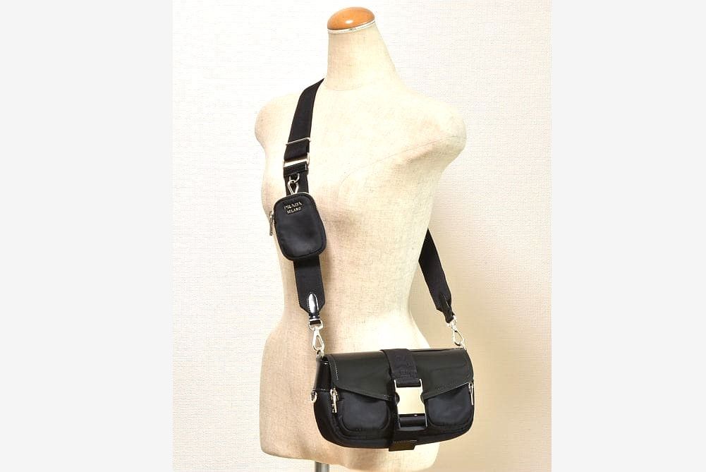 プラダ ナイロン レザー ショルダーバッグ ポーチ付き ブラック 1BD295【正規品】