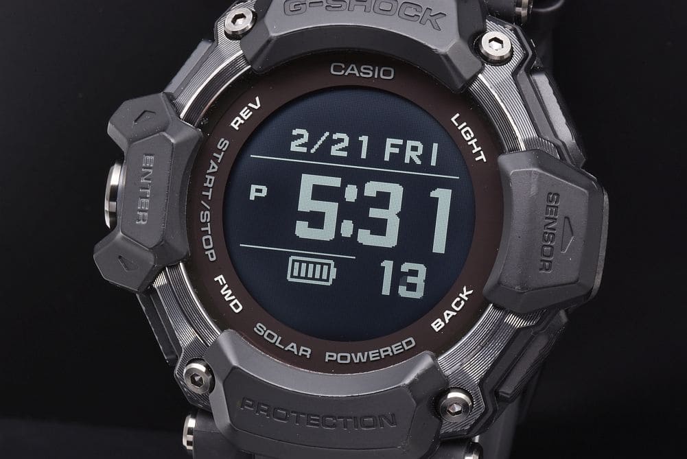 Gショックのスポーツライン『Gスクワッド』に心拍計とGPS機能を搭載した、GBD-H2000-1BJR(3515)でございます。ベゼルなどに僅かな小傷がございますが、気になるもので無くキレイな状態でございます。ガラスの傷は無く、保証書などの付属品も揃っております。 |