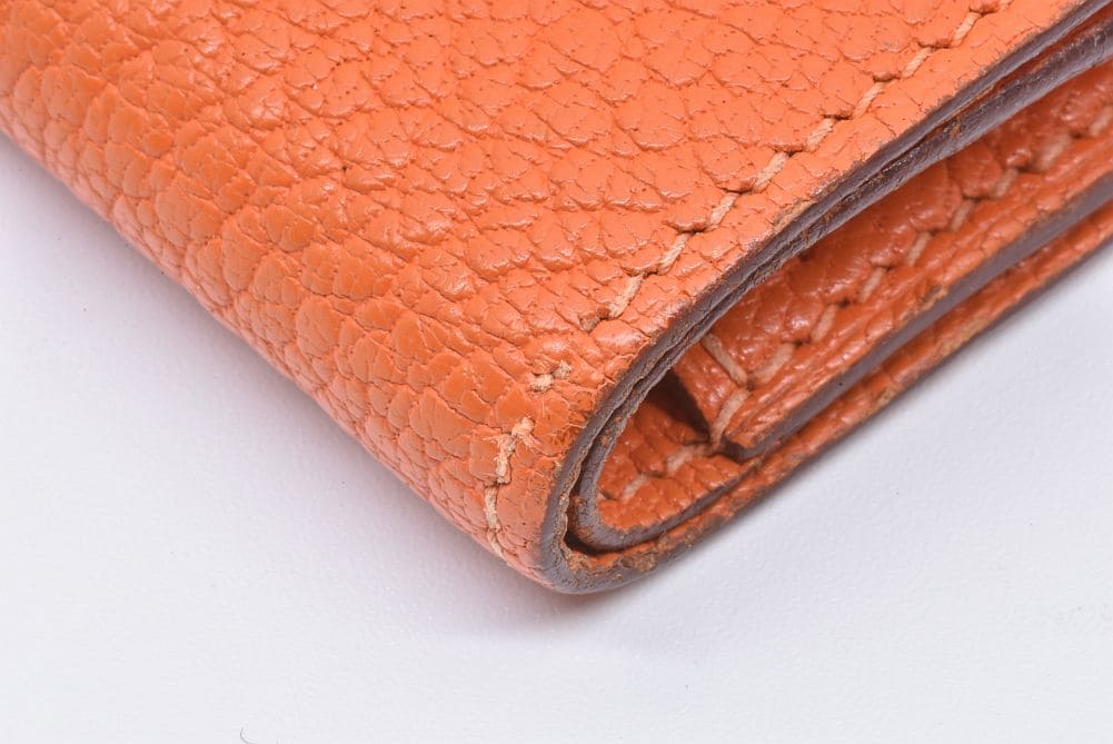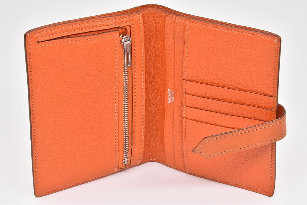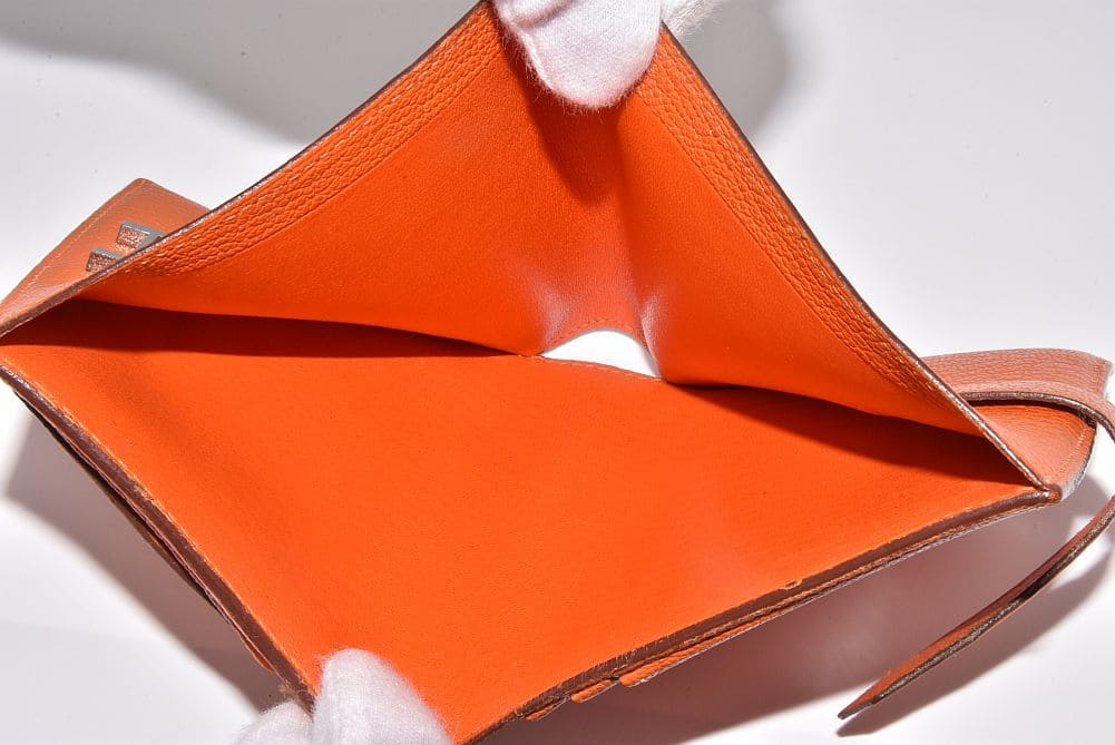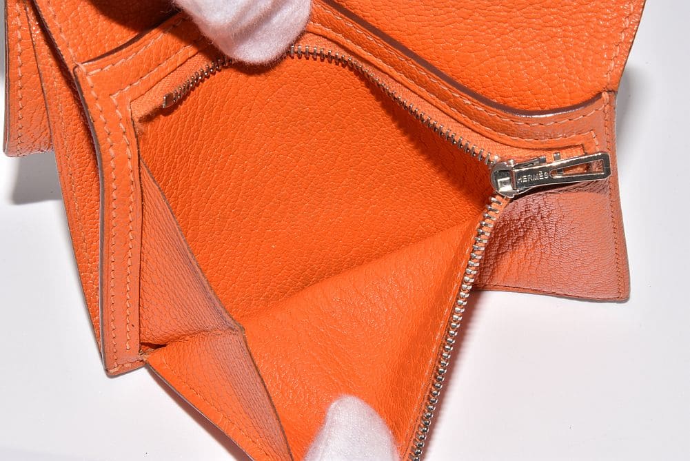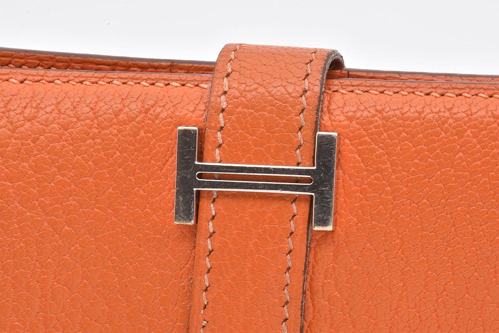 エルメス ベアン コンパクト 二つ折り財布 シェーブル オレンジ シルバー金具 □H刻印