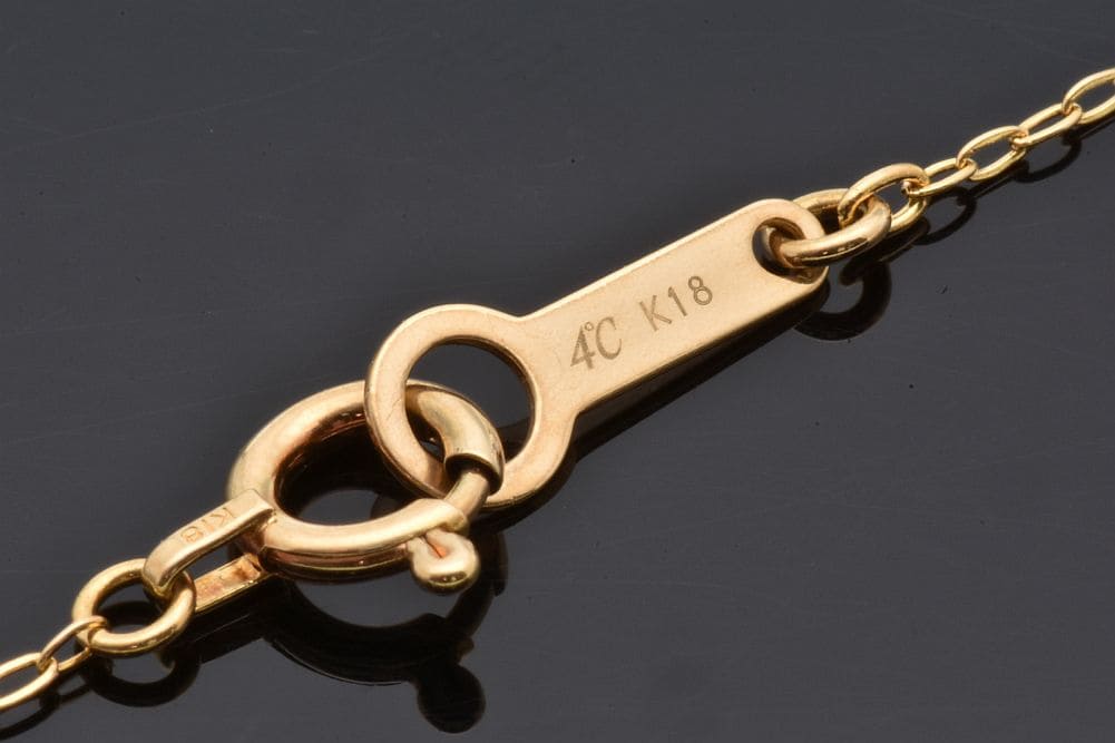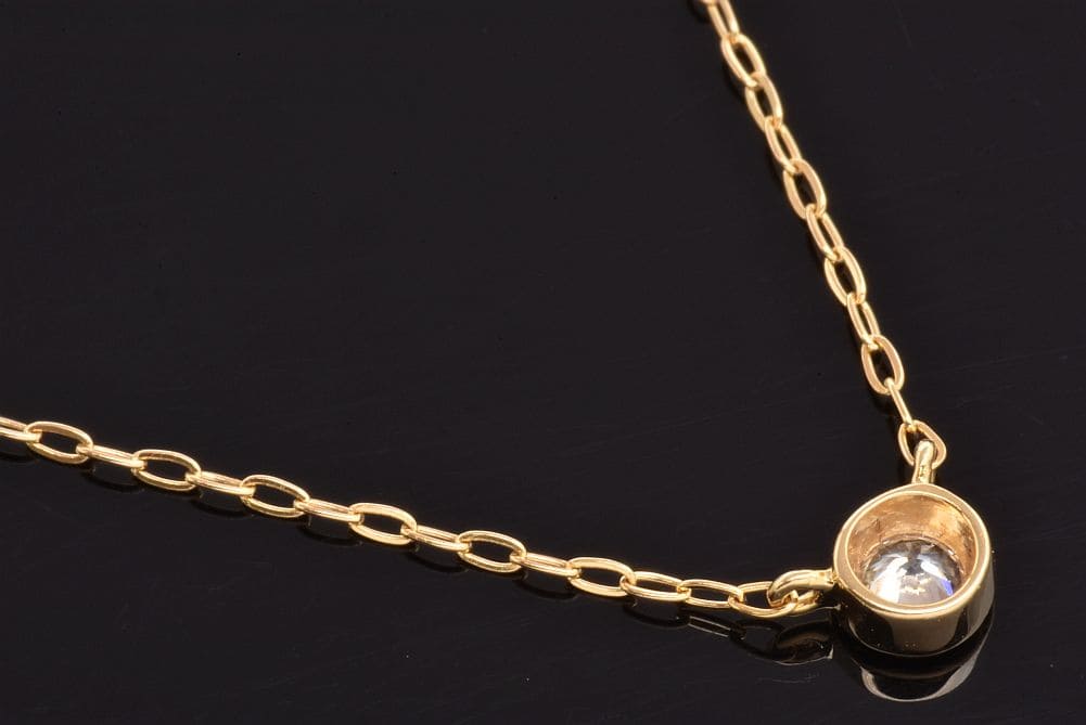 一粒のダイヤモンドが煌めくネックレスでございます。僅かなスレやモチーフ枠にキズが見られますが、目立つ大きなダメージはございません。 |