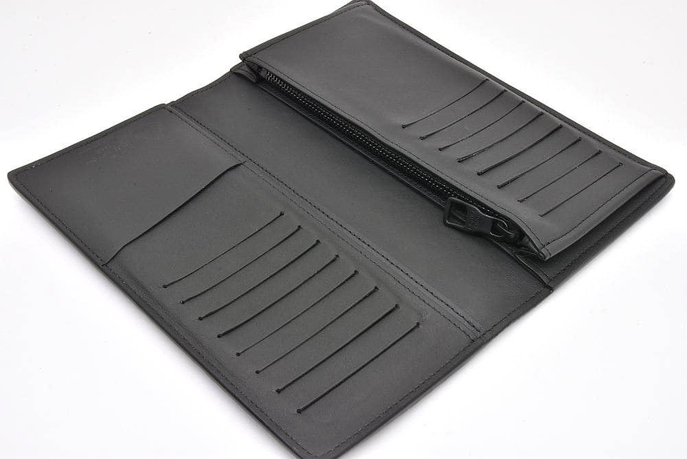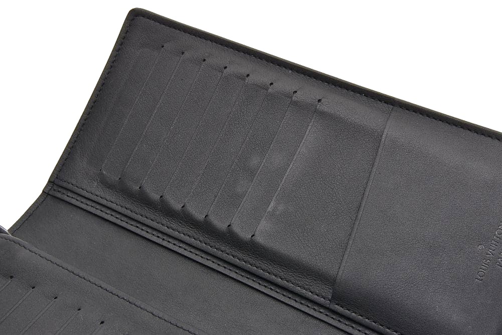 柔らかなトリヨンレザーにモノグラム・パターンをエンボス加工したスリムで機能的な長財布『ポルトフォイユ・ブラザ』でございます。コーティング部分に僅かなひび割れ、内側にスレやカードポケットに収納跡、角に若干の型崩れが見られますが、使用上目立つダメージはございません。 |