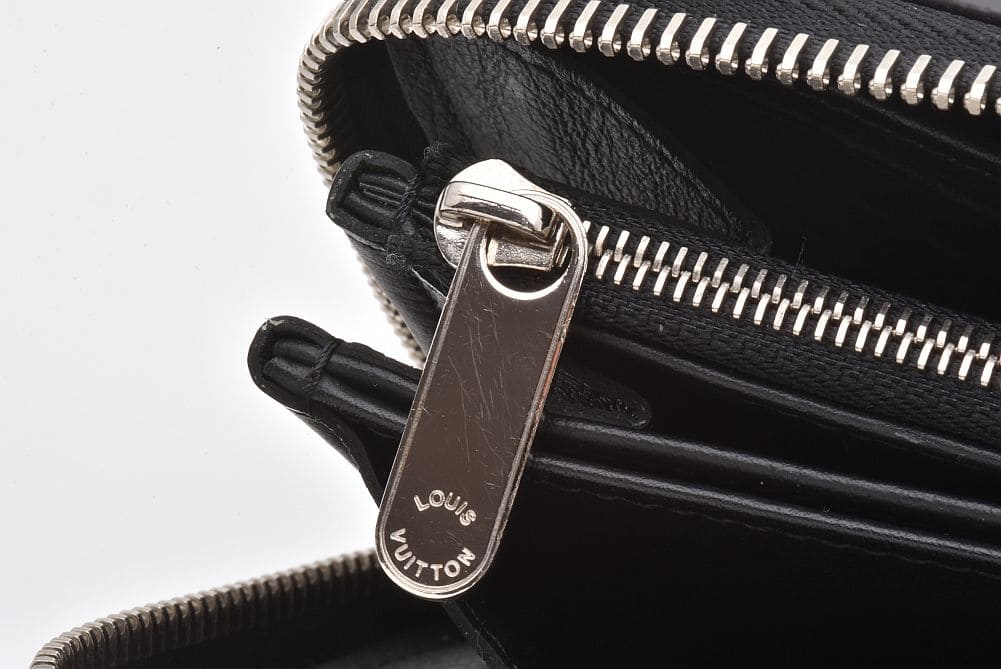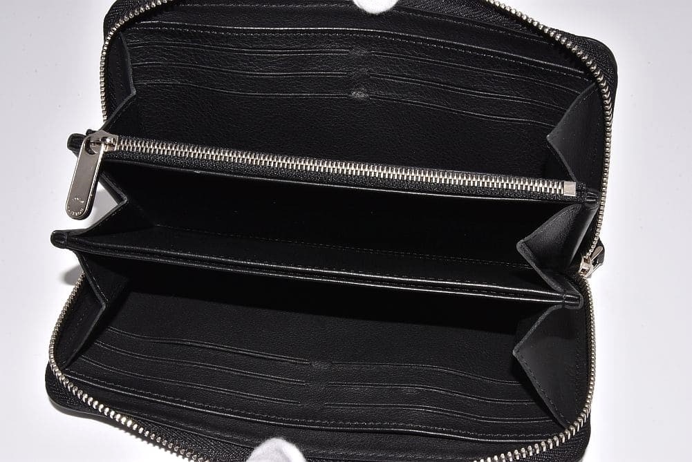 しなやかなレザーにモノグラム柄がパンチングされたマヒナラインの長財布『 ジッピーウォレット』でございます。僅かな型崩れや内側ポケット部分に薄いシワが見られます。ファスナーに少々のスレやカードポケットに僅かな収納跡がございますが、目立つダメージはございません。 |