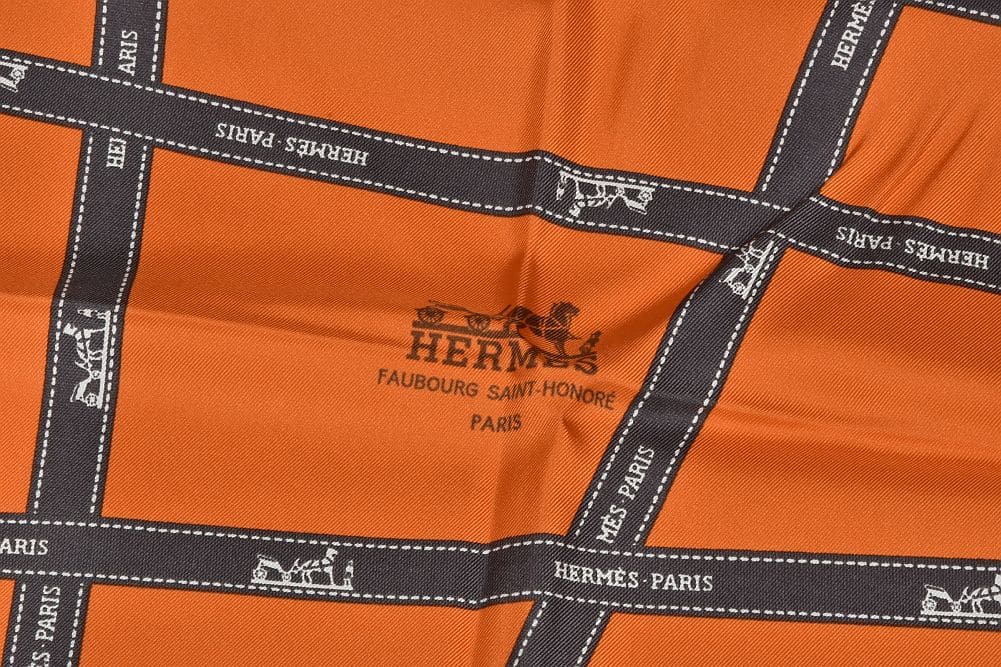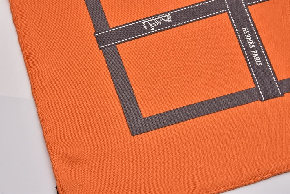 エルメス カレ90 BOLDUC RIBBON ボルデュック リボン スカーフ バンダナ オレンジ【正規品・未使用】
