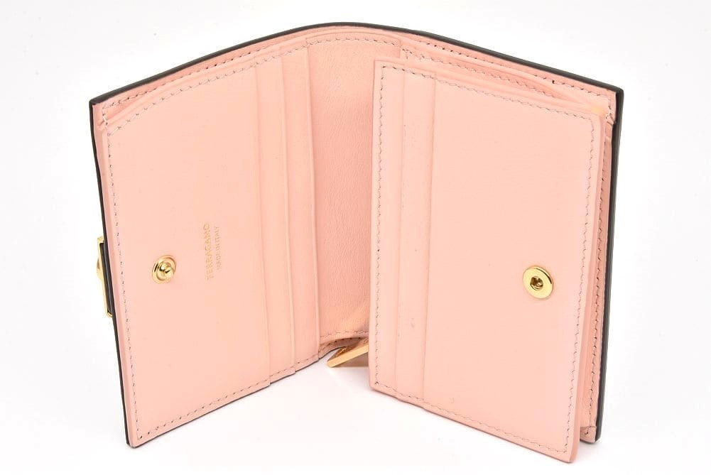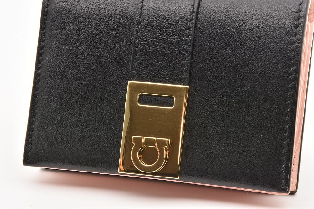 | 商品説明 | フェラガモを代表するガンチーニ金具が印象的な二つ折り財布『Hug 二つ折り財布』でございます。フロントの金具に僅かなスレ、内側カードポケットに薄いヨゴレが見られますが、使用感の少ないキレイな状態でございます。 |