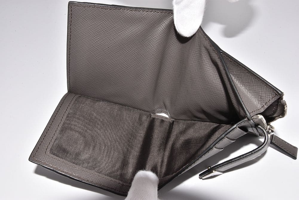 | 商品説明 | アイコニックな「サフィアーノレザー」にフロントのトライアングルロゴが印象的な二つ折り財布『サフィアーノ タブ カードケース』でございます。僅かな角スレやトライアングルロゴに細かなスレが見られます。縁のコーティングに僅かなベタつきが感じられますが、使用感は少なく目立つダメージはございません。 |