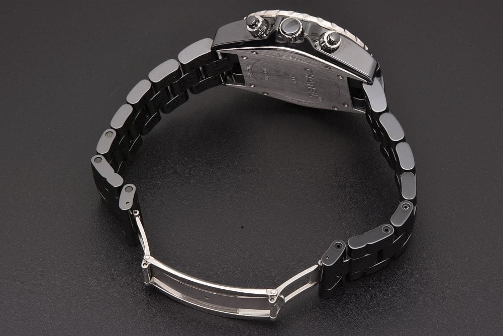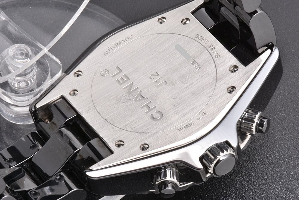 | 商品説明 | ブラックセラミックのJ12 ダイヤモンド9P クロノグラフ 41mm メンズ オートマチック H2419でございます。クロノ針に僅かな経年劣化やステンレス部分・セラミック表面に薄いスレ傷はございますが、大きな打痕や欠けは無く全体的にキレイな状態でございます。ブレスの伸びは感じられず、ガラスの傷はございません。 |