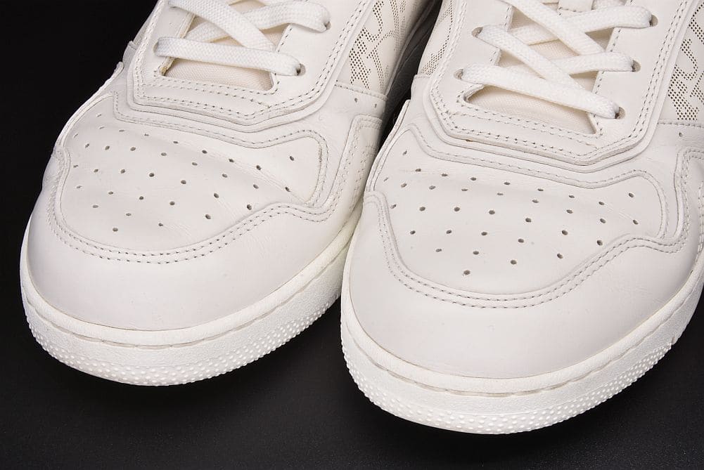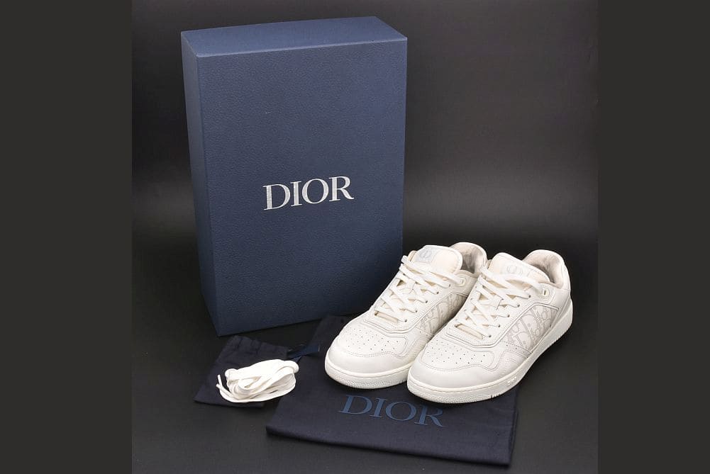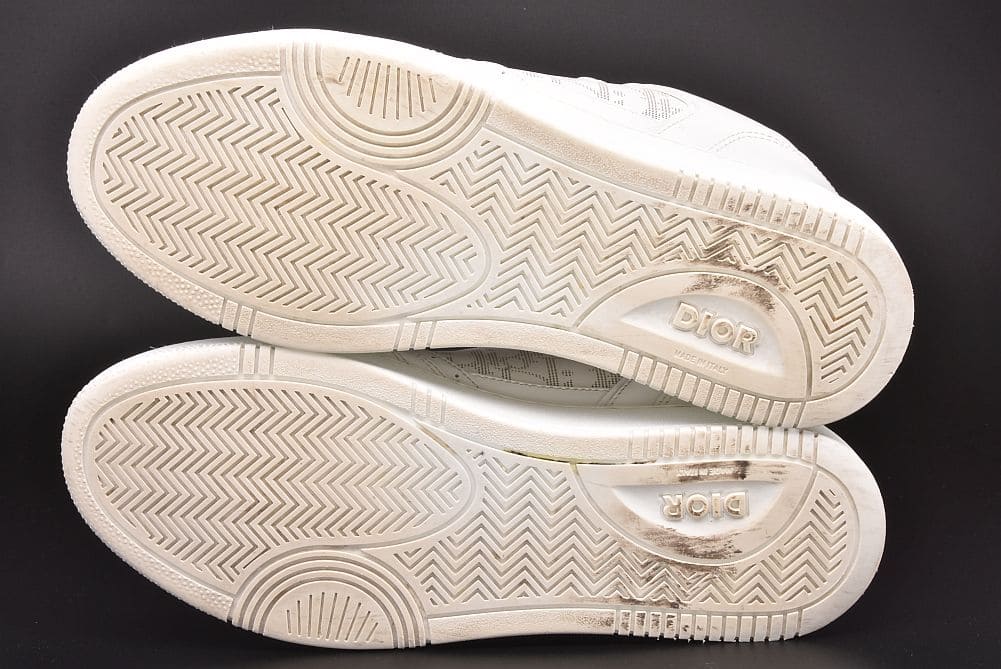 サイドパネルの「ディオールオブリークギャラクシー」レザーが印象的な『B27 アップタウン ロートップスニーカー』でございます。表面に若干の汚れやシワ、内側に僅かなシミが見られます。ソールに少々の削れや汚れ、全体的に少々の使用感がございますが、使用上大きく目立つダメージはございません。 |