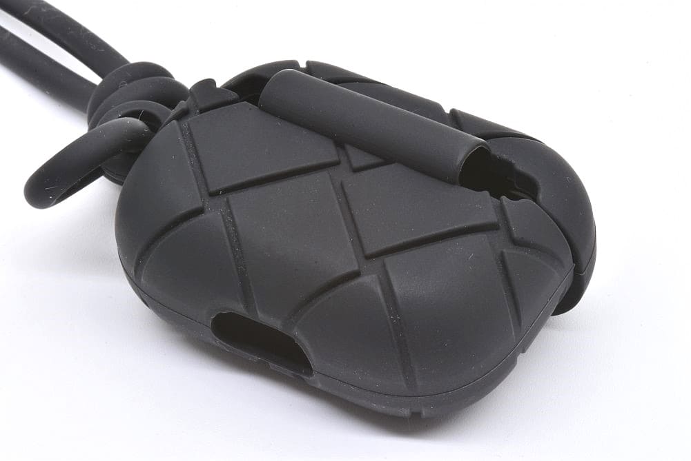 アイコニックなイントレチャートのデザインがされたラバー製のAirPods proケースでございます。表面に少々のスレが見られますが、使用上目立つ大きなダメージはございません。 |