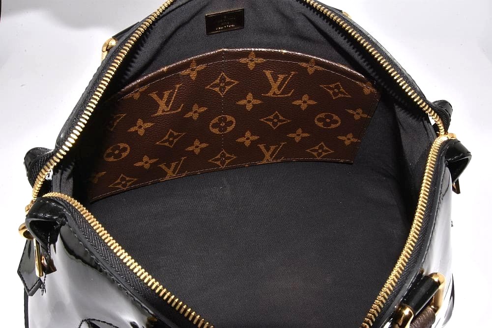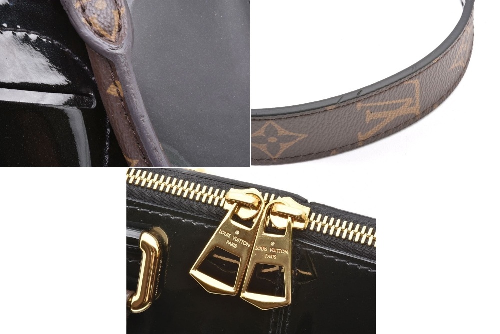 | 商品説明 | パテントレザーにLVロゴやモノグラムパターンのハンドルがデザインされた『トート・ミロワール』でございます。金具部分や外側表面に細かなスレが見られます。ハンドルやショルダーストラップの縁に若干のベタつきや内側にスレが見られますが、目立つ大きなダメージはございません。 |