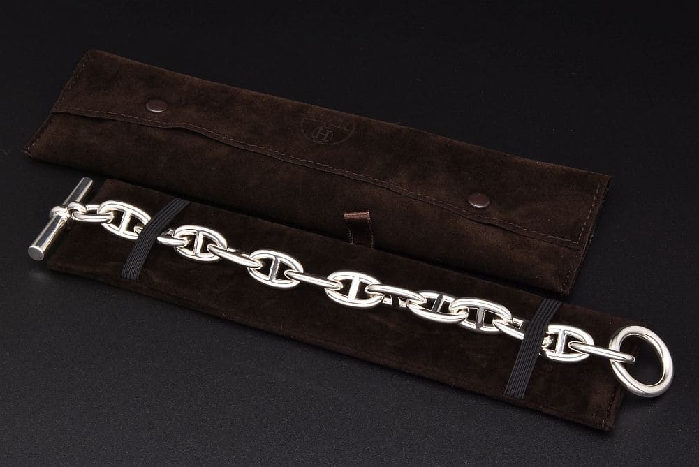 エルメスを象徴する『シェーヌ・ダンクル ブレスレット TGM』でございます。少々の細いスレや小キズがございますが目立つダメージはございません。 |