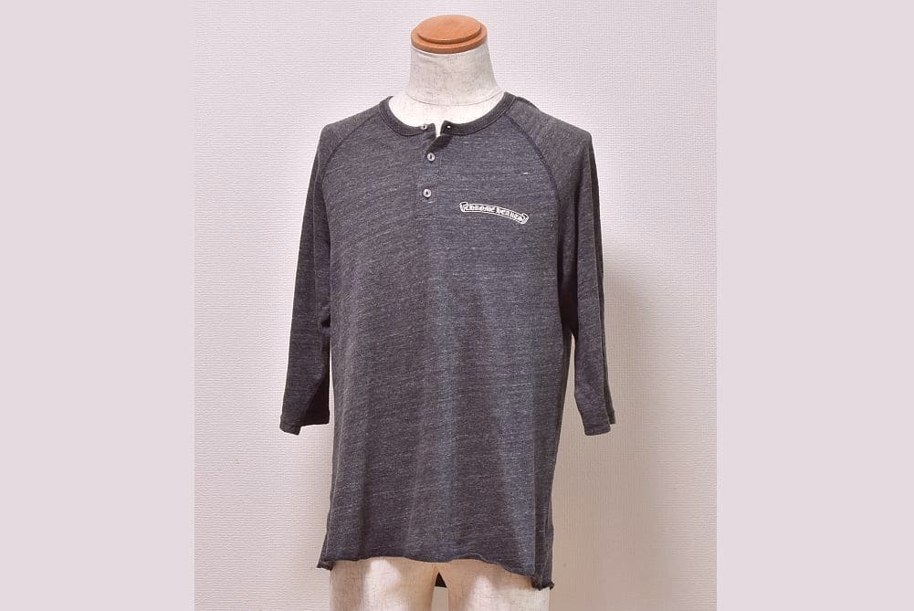 クロムハーツ フレアニー スクロール プリント ヘンリーネックTシャツ 七分袖 グレー メンズ Lサイズ