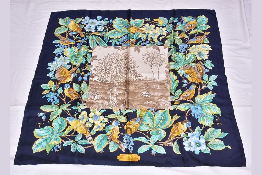 グッチ フローラルプリント 大判スカーフ カレ 鳥 蝶々 ネイビー マルチカラー