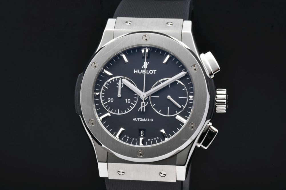 ウブロ 521.NX.1171.RX クラシック フュージョン クロノグラフ チタニウム メンズ チタン/ラバー オートマ HUB1143 裏スケ 黒文字盤【HUBLOT】
