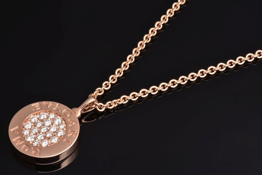 ブルガリ パヴェダイヤモンド オニキス ブルガリブルガリ ネックレス K18PG ピンクゴールド 350815【正規品・新品同様品】