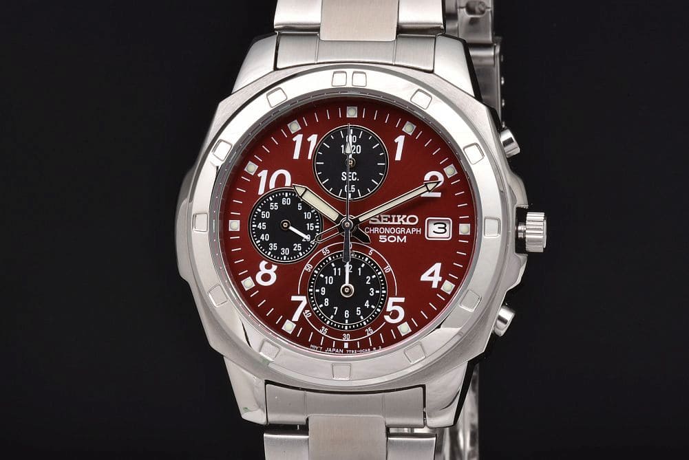セイコー SND495P1 クロノグラフ メンズ SS クォーツ 7T92 黒/赤文字盤【海外モデル】