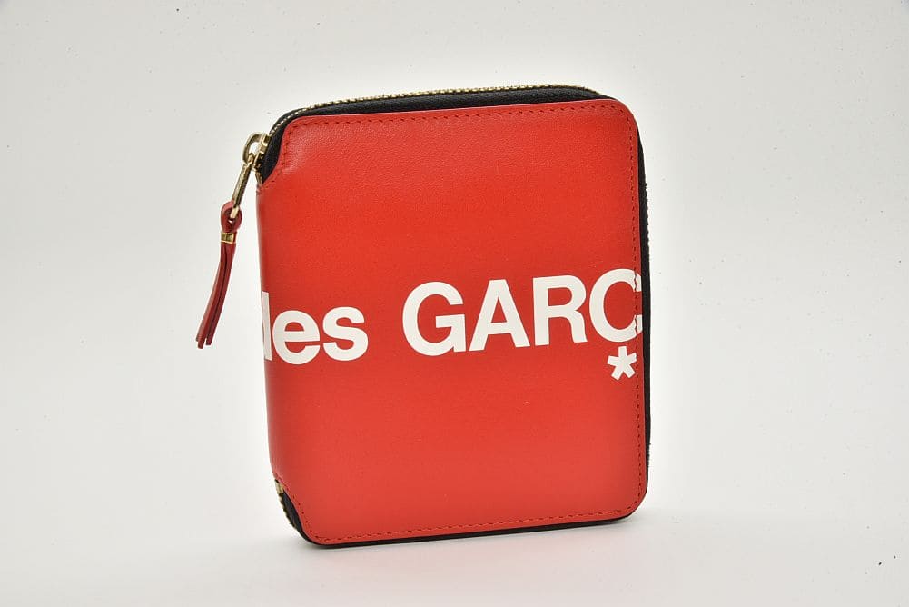 コムデギャルソン HUGE LOGO ヒュージ ロゴ 二つ折り財布 コンパクトウォレット ラウンドファスナー レッド