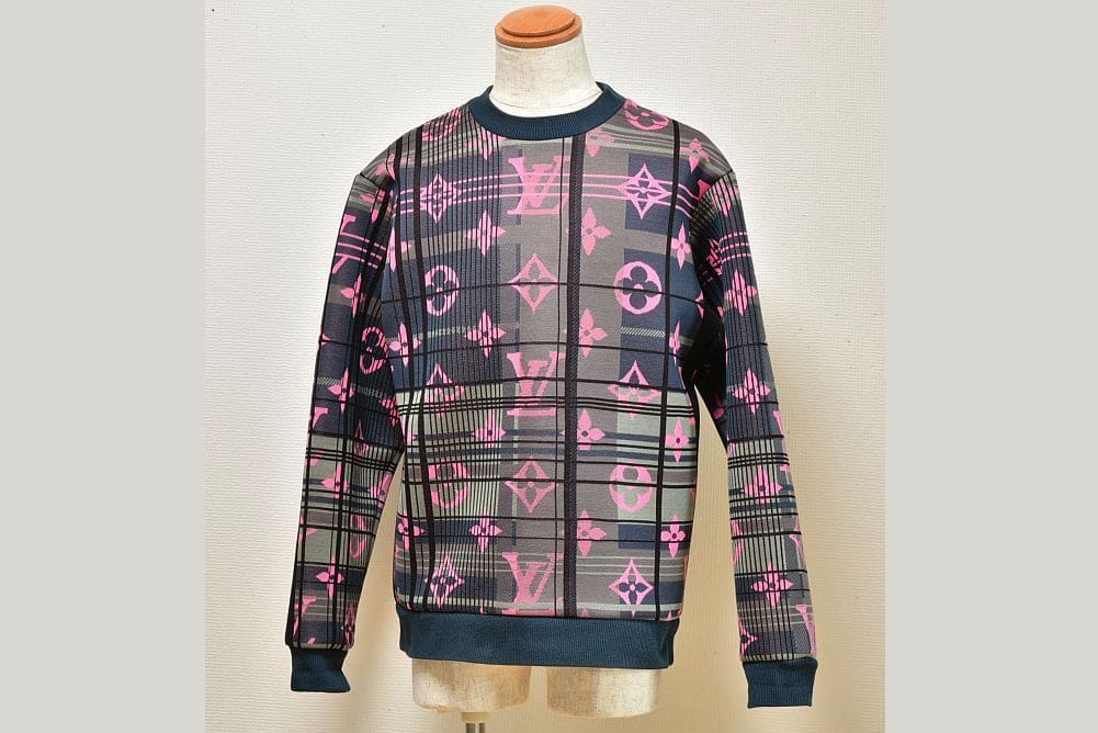 ヴィトン モノグラム ジャガード スウェット トレーナー メンズ M ピンク グレー HKY75WZRW