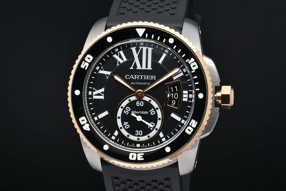 カルティエ W7100055 カリブル ドゥ カルティエ ダイバー メンズ SS/RG/ラバー オートマ 1904MC 黒文字盤 3729